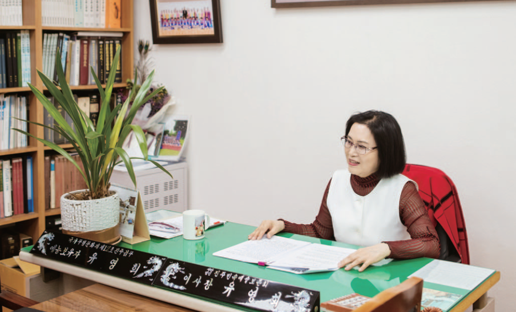 유영희 이사장 현재 진행되고 있는 국가무형문화재 제12호 진주검무와 경상남도무형문화재 제12호 진주포구락무를 비롯해 정재기본무, 고무, 향발무, 남무, 입춤, 살풀이춤, 소고춤, 장고춤, 지전춤 등을 보존하고 전승하는 데 최선의 노력을 다할 것입니다. 그리고 전통악기 분야인 장고, 좌고, 대금, 피리, 해금, 가야금 등은 물론 가곡, 민요는 물론 대작품인 ‘의암별제’, ‘선악(배따라기)’ 또한 전승에 게을리하지 않고 열심히 할 것입니다.