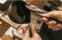 •다시 쇳대에 끼워 망치로 골고루 두들겨 늘인 뒤, 정확한 타원 모양을 만든다.