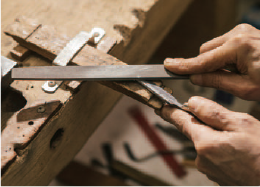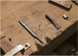 •칼날 제작은 강철을 이용, 단조작업으로 형상가공하고, 풀림작업 후 줄작업으로 정확히 가공한다.